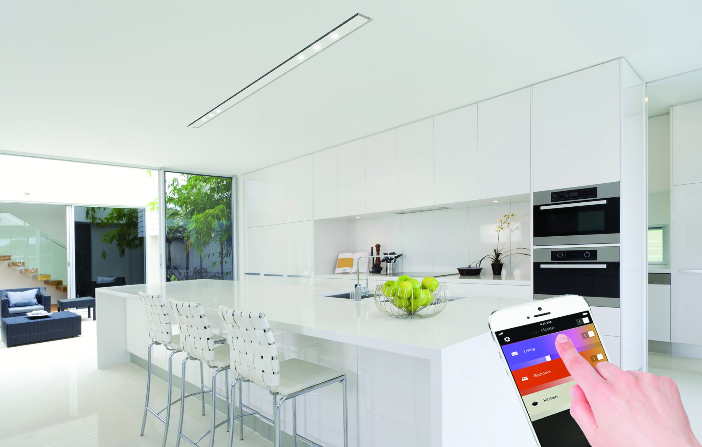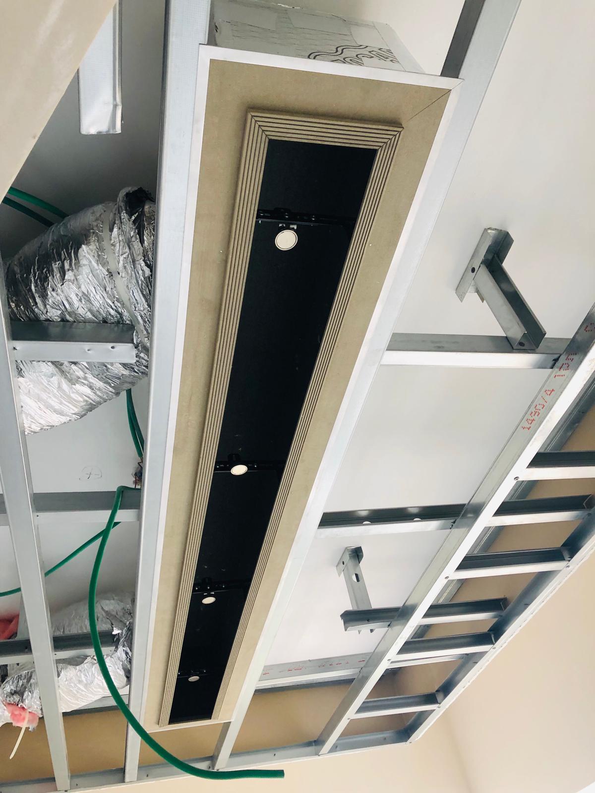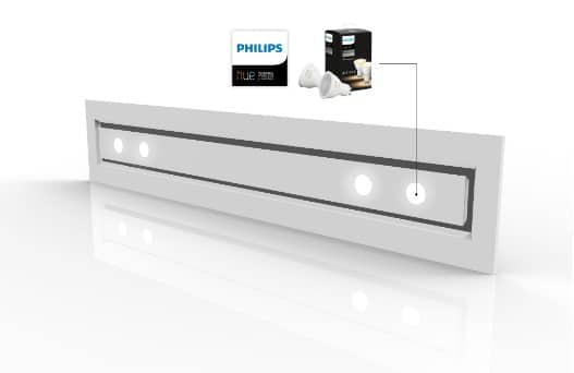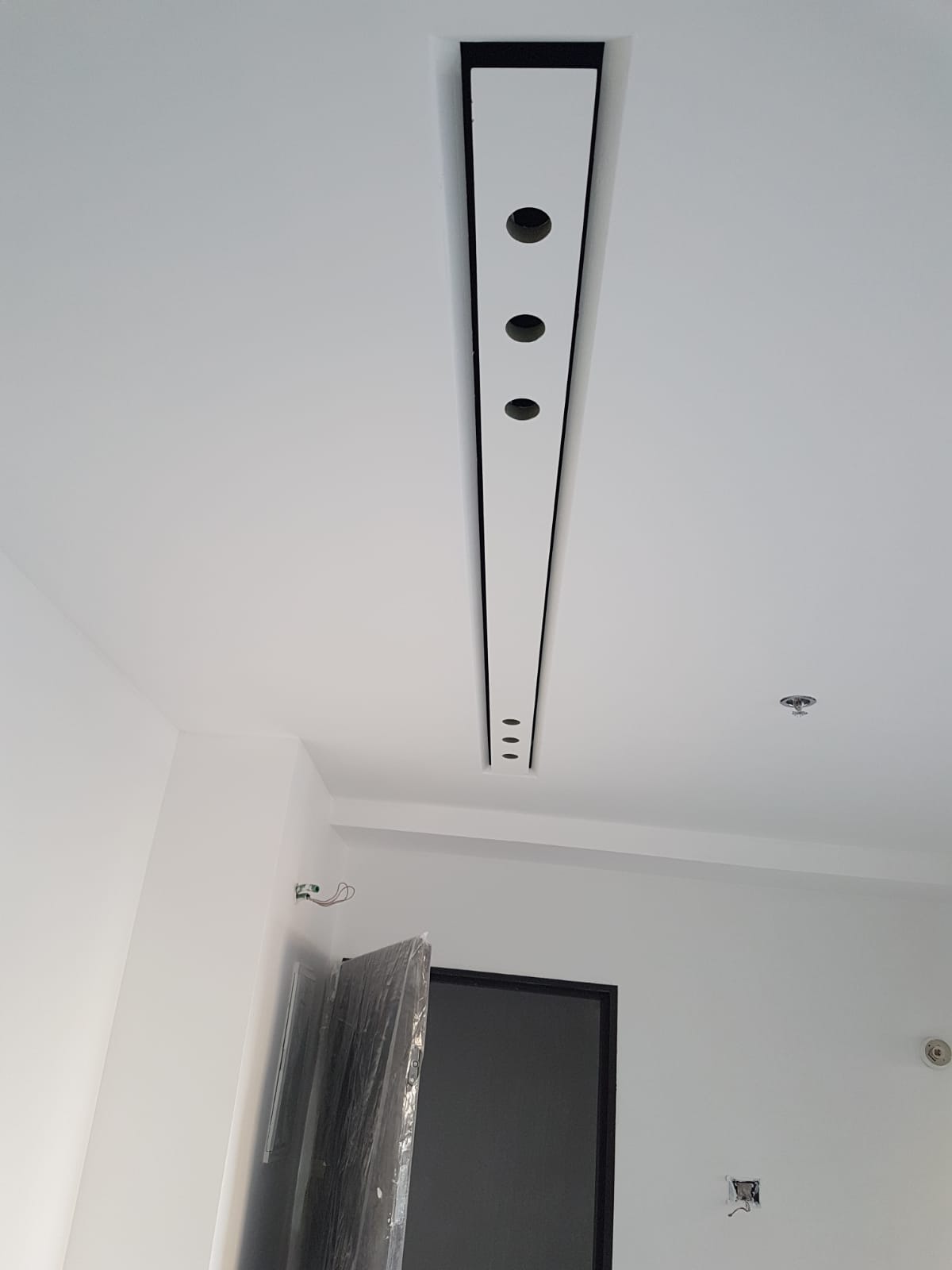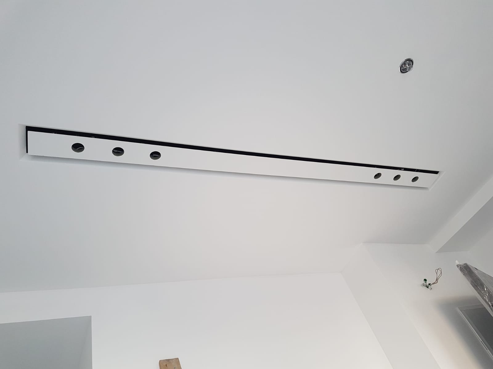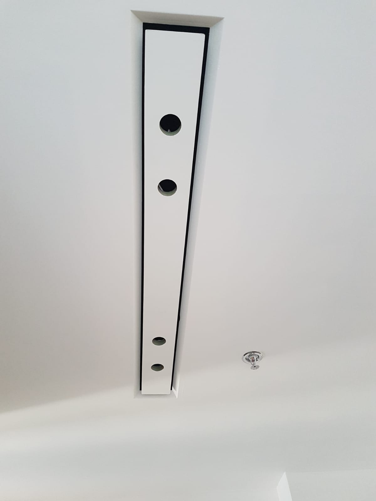מפזר אוויר קווי דקורטיבי עם חריץ היקפי המשולב תאורה עם ספוטים.